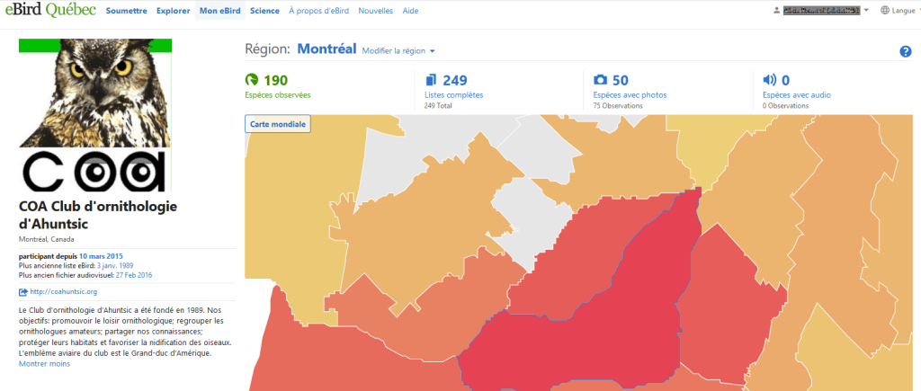 Profil du COA sur eBird (vous devez avoir un compte eBird pour le voir):
